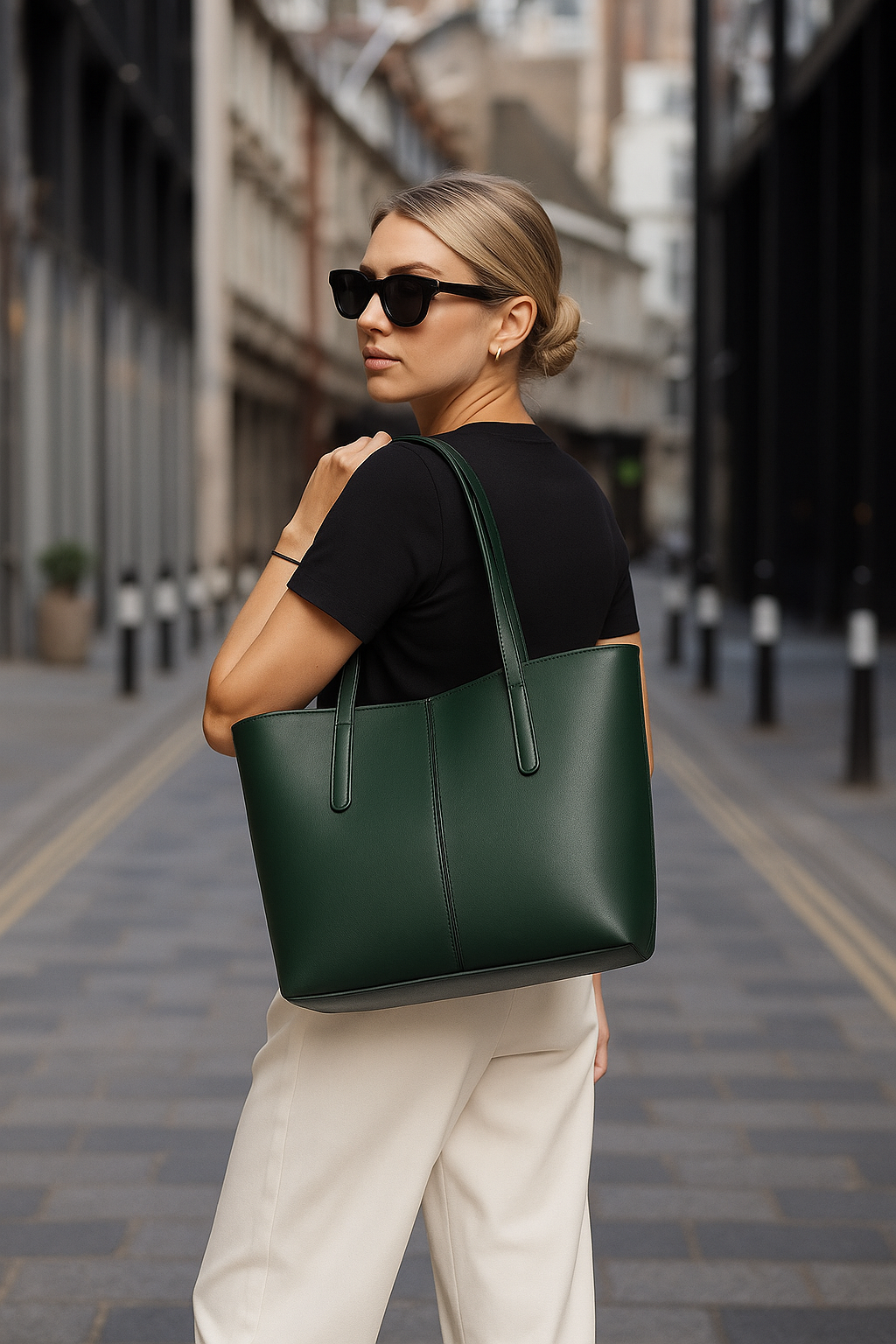 “I’ve been carrying the green Kornelia for a week now and love it. Fits my laptop and planner perfectly. The color is so elegant.”